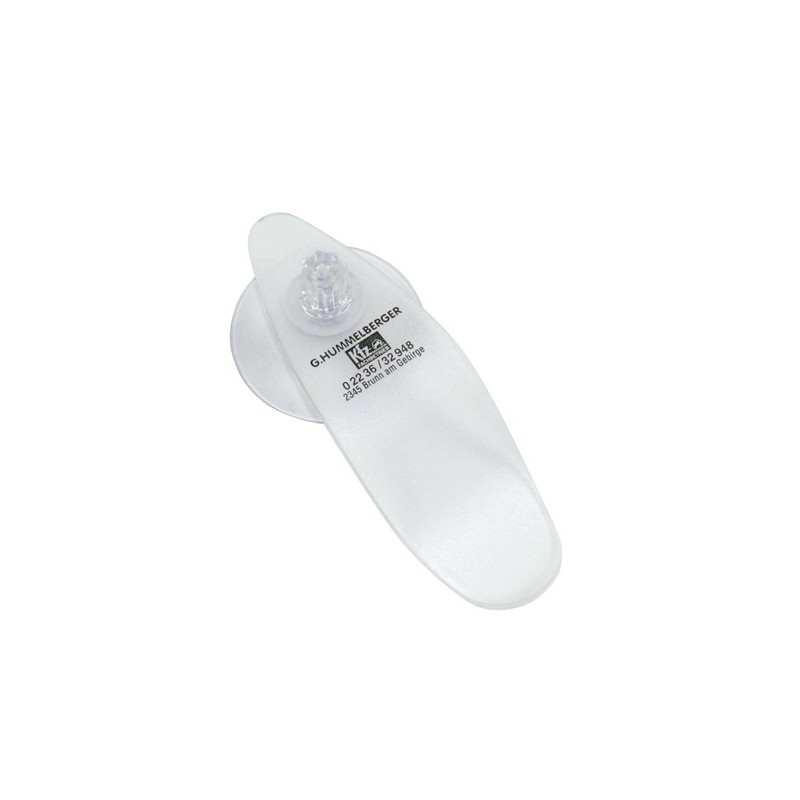 Parkeringsbillet holder med sugekop 29x87x30 mm. 9 g. Trykflade 20x10 mm. prisen er Incl 1 farve tryk for fgl farvetryk er prisen v/250=1,50, 500=0,90, 1000=0,75, 2500, 0,65, 10,000=0,50. Trykopstart 530,00 kr.