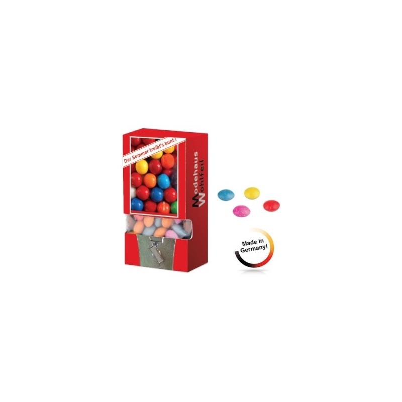 70x37x27mm, kolli á 144stk, holdbarhed bolcher 24måneder, chokolinser 10 måneder.