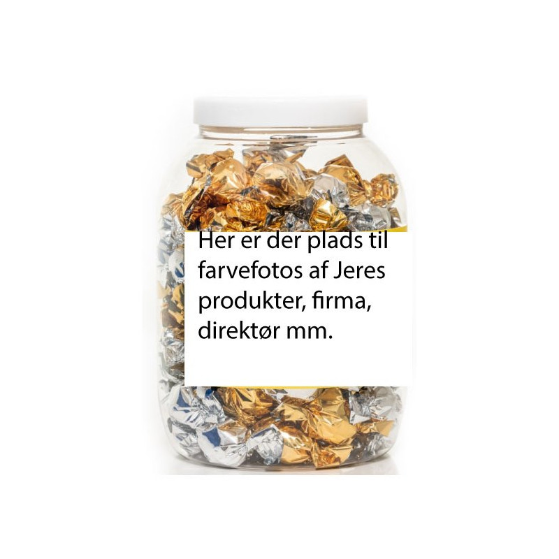 Chokoladekugler 500g i bøtter med Jeres egen farvefoto reklame på banderolerne.