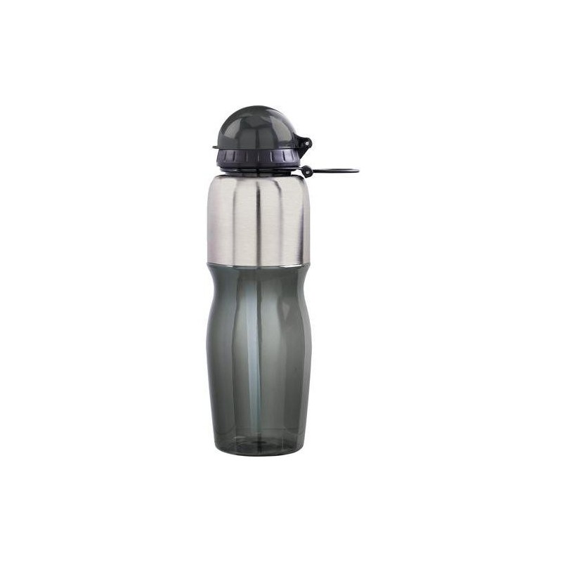 Drikkeflaske i drikkedunk,drikkedunk med logo,rustfri stål/transparent med indbygget sugerør. 800 ml, 7cm Ø x 25cm, 130 gram. Trykflade 35x20mm. Pr tryk v/120stk=4,25kr, 240=4,15, 480=3,85. Trykopstart 530,00kr