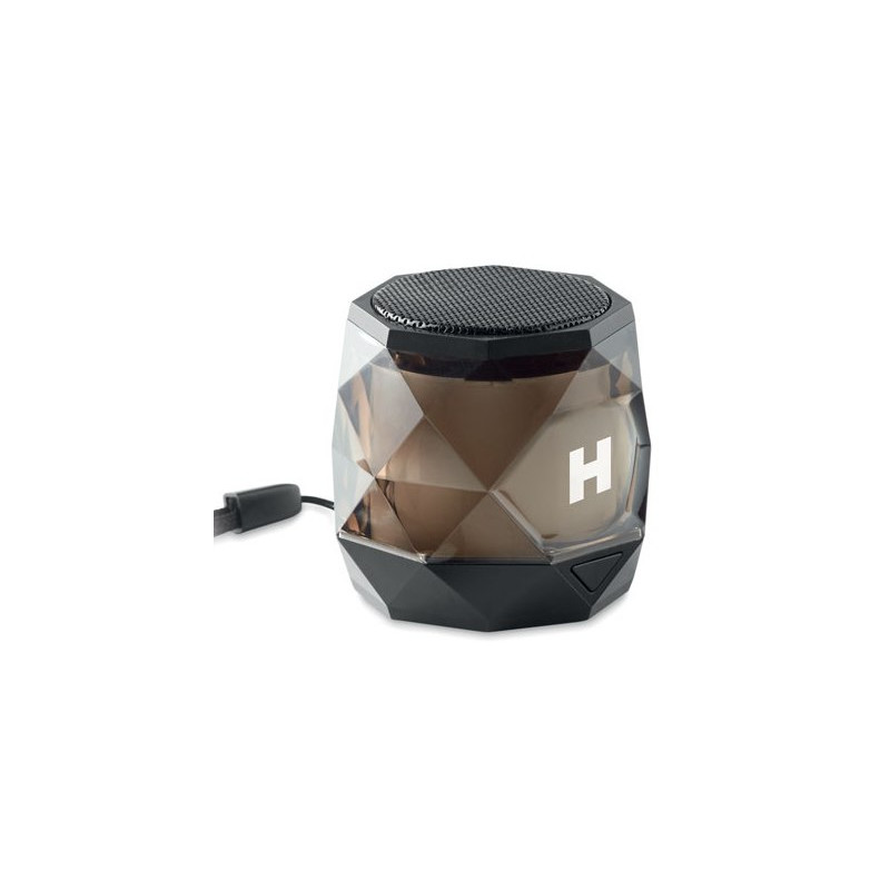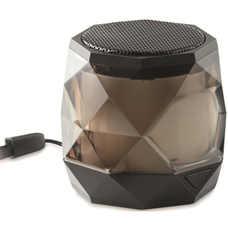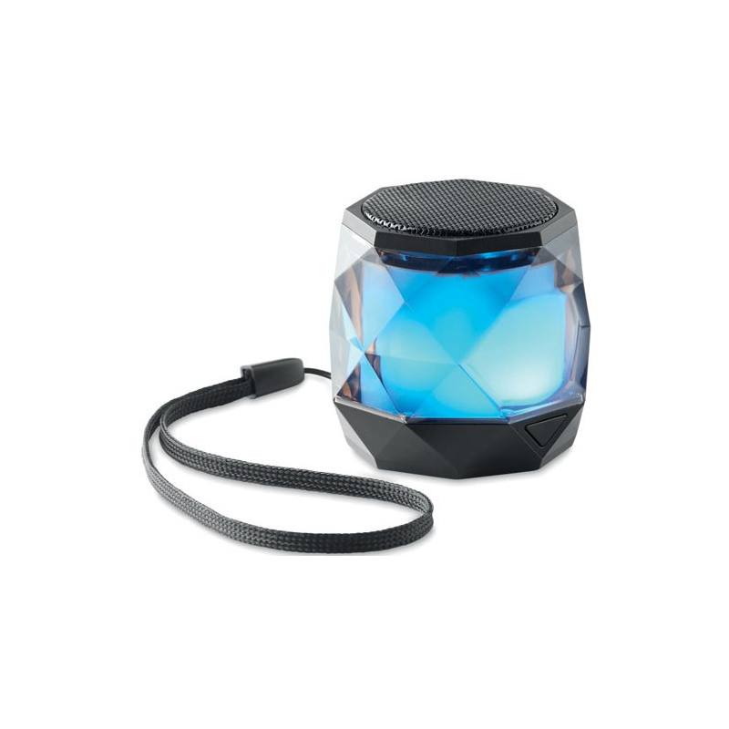 5.0 Bluetooth højttalere der skifter mellem 6 forskellige farver lys. med udskiftelig 200mAh batteri. Incl håndledsren. 3W, 4 Ohm output. Spilletid ca 2 timer. 48mm Ø x 45mm. Trykflade 1cm høj x 1,5cm bred. Incl tryk og incl trykopstart.