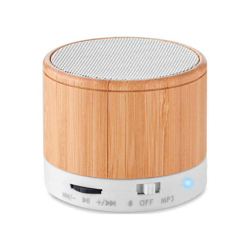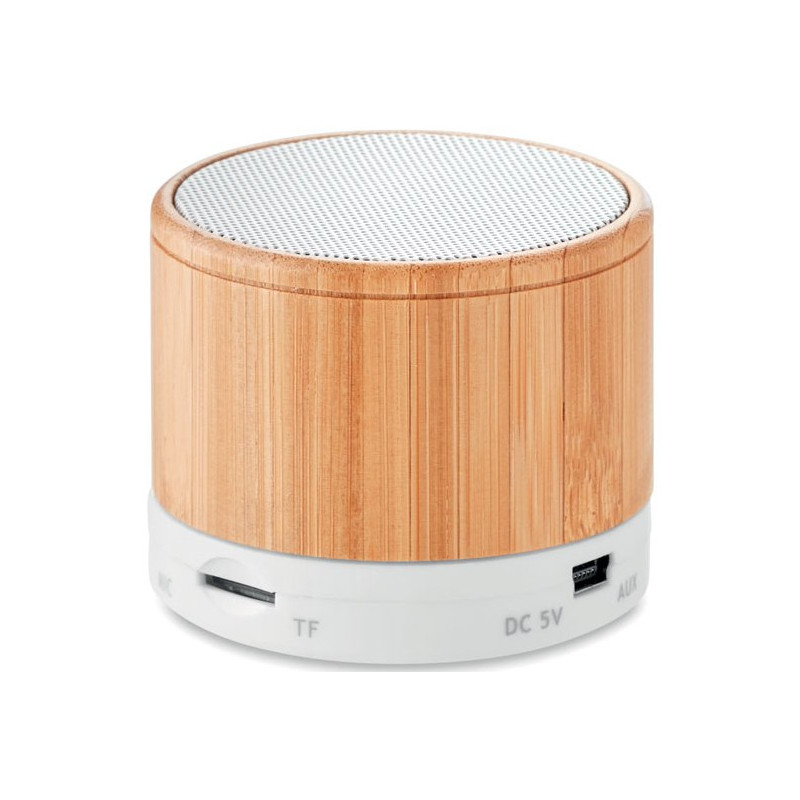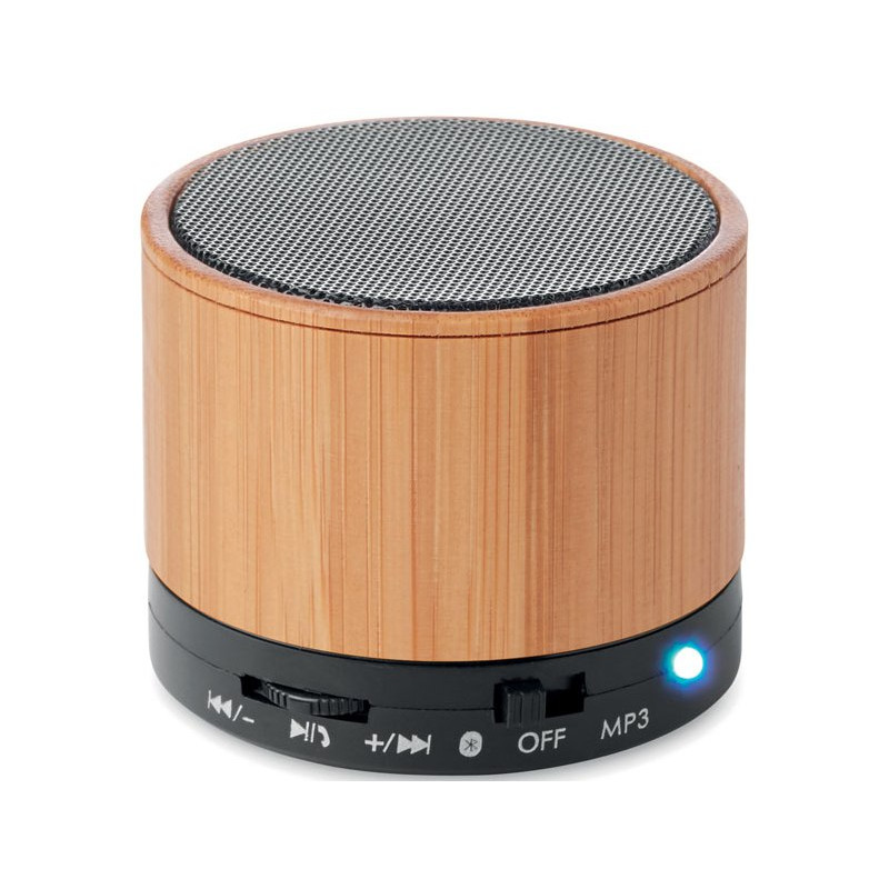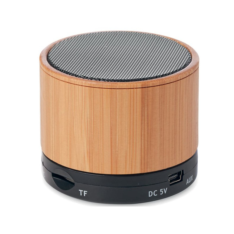 4.2 Bluetooth højttaler ABS og bambus. LED lysindikator. Udskifteligt Lithium batteri 450 mAh medfølger. SD kort port samt AUX/USB kabel medfølger. Håndfri opkaldfunktion. Outout data 3W. 3Ohm og 5V, Ca 3 timer spilletid. 49mm x 59mm Ø. 120 gram. Pr tryk eller lasergravering v/min 50stk=3,00kr. Trykopstart 530,00kr. Lasergraveringsopstart 740,00kr. Max 4-farvetryk,
