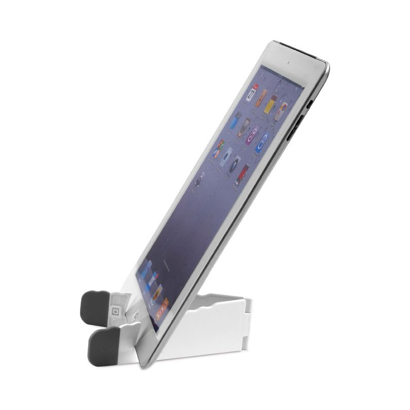 Tabletholder - telefonholder, 13x4x0,5cm, 19g, ABS med grå silicone. Telefonholdere er eftertragtede på køkkenborde (gør det let at læse mad og bageopskrifter) samt skriveborde (så telefonen ikke forsvinder under papirer og mapper). Som en service til Jeres kunder, kan tabletholderne forsynes med Jeres web adresse, så Jeres kunder ikke skal søge blandt Jeres konkurrenter.