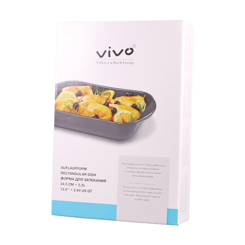 VIVO ovnfast stegefad, 2,5 ltr, Stegefade i høj kvalitet stentøj. Tåler dybfrost, bageovn, microbølgeovn samt opvaskemaskine. Stegefade der pynter på middagsbordet, og kan tages direkte fra ovn til bord. Produceret i EU af Villeroy & Boch Group, kendt for kvalitetsprodukter siden 1748. En brugbar gave der skaber glæde resten af livet.