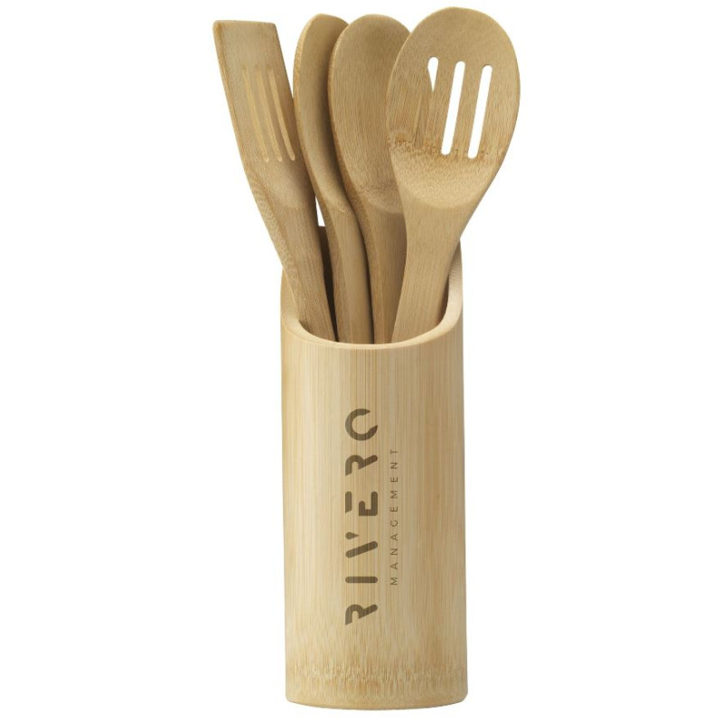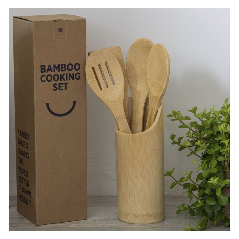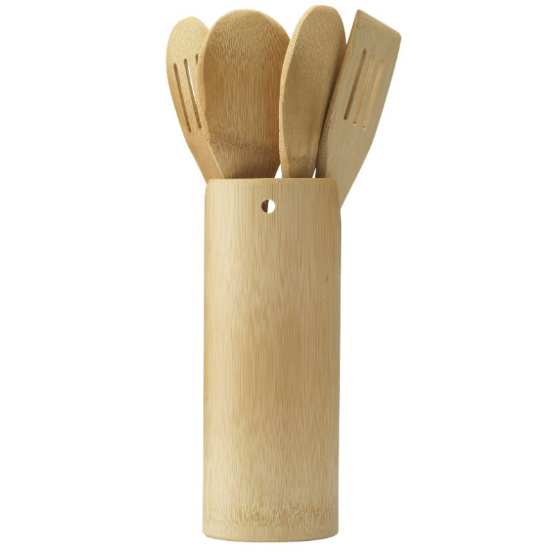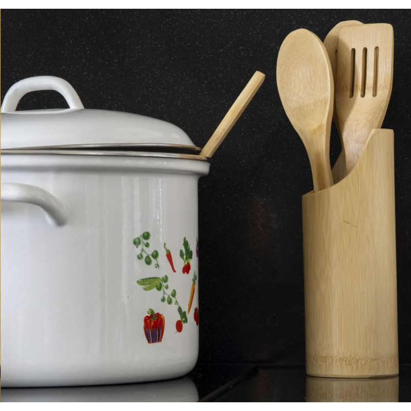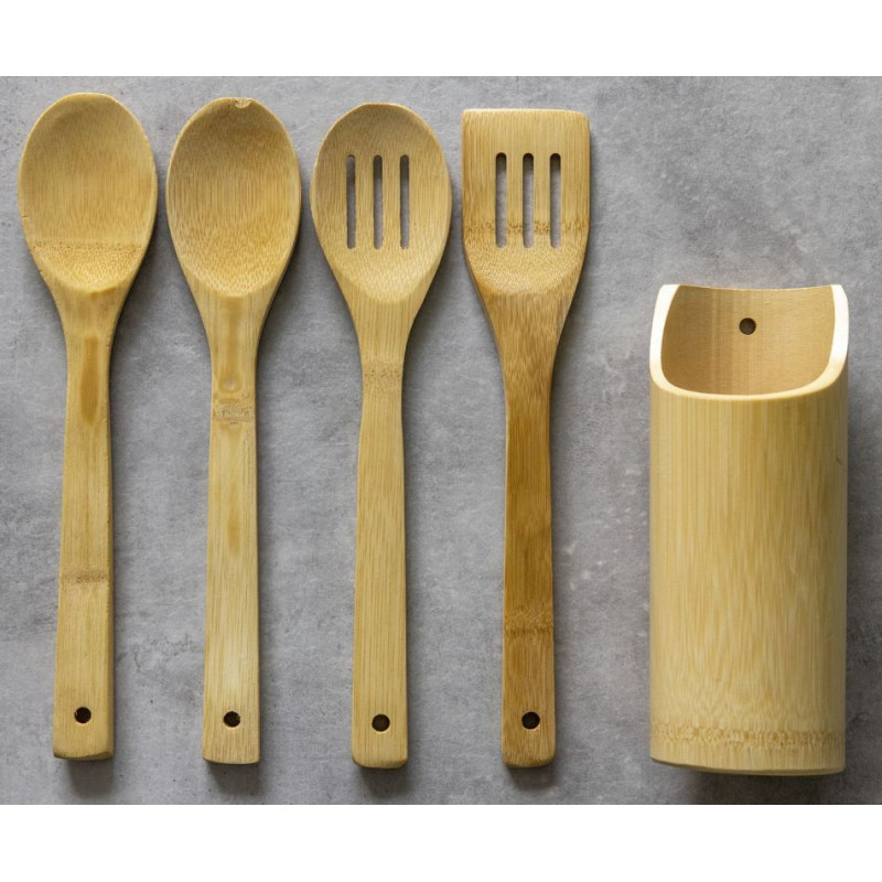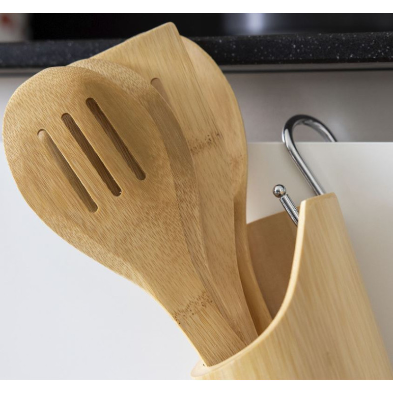 Køkkenredskaber i holder af bambus