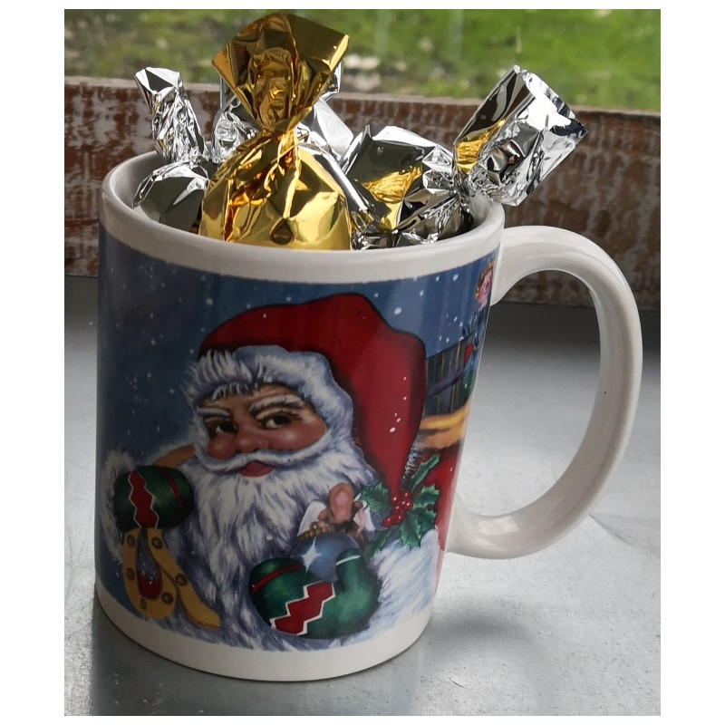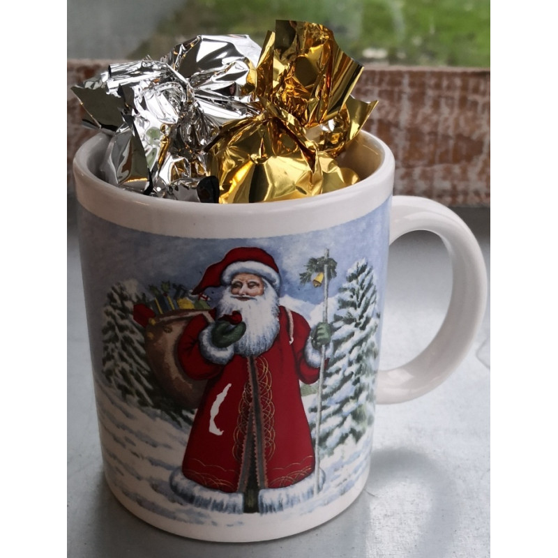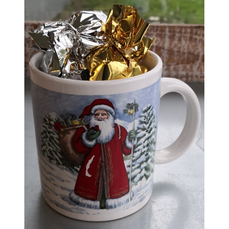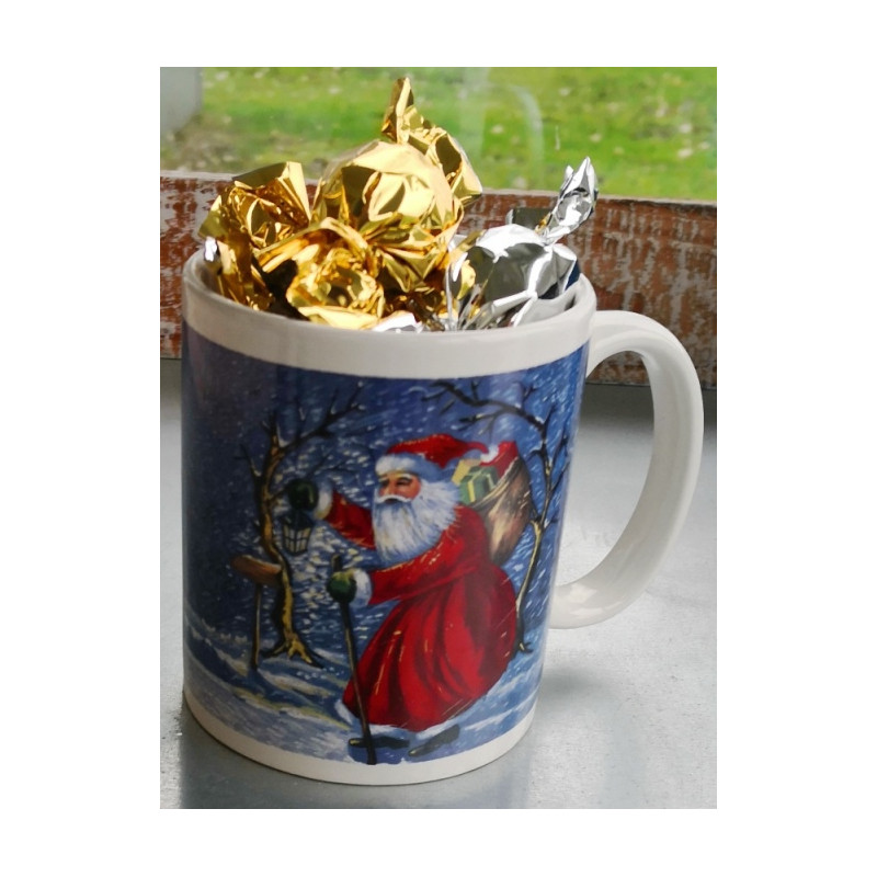Porcelænkrus med julemotiv, ass motiver, ca 10cm høj x 8cm Ø.