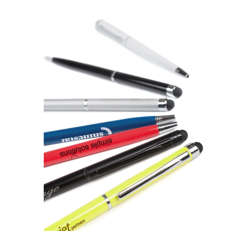 BIC Stylus kuglepenne 138mm lang x 1cm Ø (incl clip). Pennenes top er forsynet med sort tastedup til computere mm. De sorte og hvide kuglepenne kan leveres med blåt eller sort blæk. De øvrige med blåt blæk.