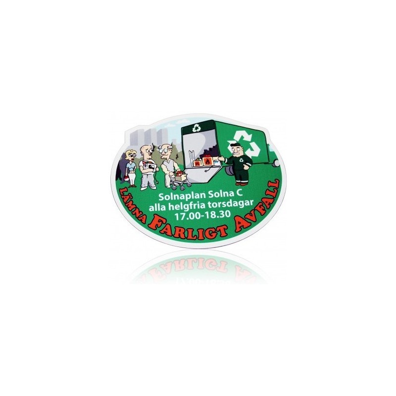 Køleskabsmagneter op til 25 cm2. Bestil din egen bløde magenet efter mål. Vi trykker farvefotos logoer m.m. Formskåret efter Jeres ønske. Blød magnet på bagsiden. Tykkelse 0,85 mm. Incl tryk og trykopstart. Hver gang magneterne ses på køleskabslågerne, lagres reklamen i hukommelsen. Mennesker er tilbøjelige til at vælge leverandører og produkter der ligger øverst i hukommelsen.
