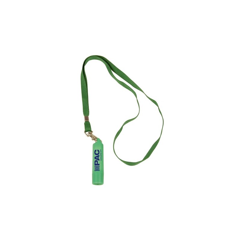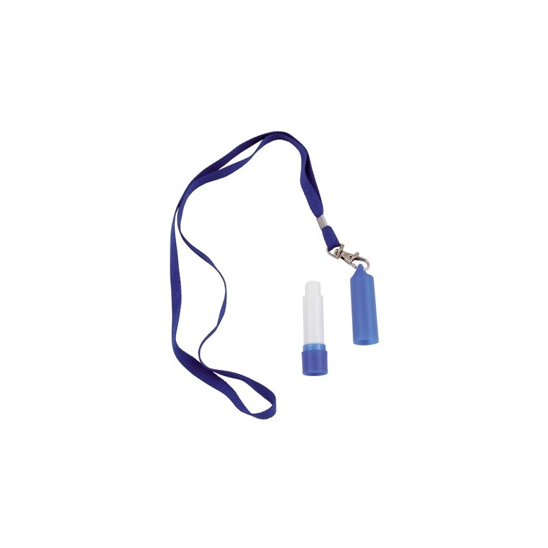 Læbepomade med lanyard. God mod tøre læber. Vanille smag. Ø 1,8 x 7,8 cm. Trykflade ved 1 farvetryk 40x55 mm. Ved flere farver er trykfladen 40x12 mm. Prisen er Incl. 1 farvetryk. Pr fgl trykfarve v/250stk=1,50kr, 500=0,88, 1000=0,75, 2500=0,63, 10000=0,50. Trykopstart 595,00 kr.
