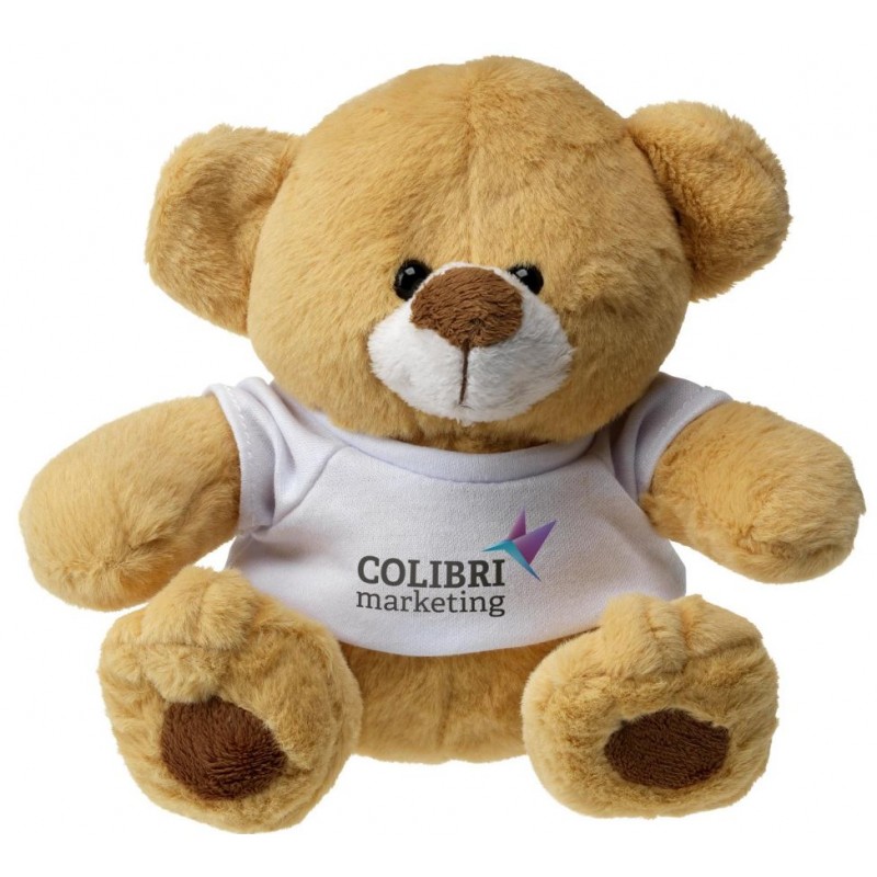 Teddybjørne med trøje. 17x16cm, 106 gram. Trykflade på trøjens front 6x3cm. Digitaltryk dog 55x30mm. Pr tryk v/84stk=5,35kr, 168=4,85, 336=4,35, 672=4,20, 1344=3,95. Trykopstart 570,00kr. Digital farvetryk v/84stk=11,85kr, 168=11,40, 336=10,95 672=10,55 1344=10,15. Trykopstart flerfarvet digitaltryk 395,00kr.