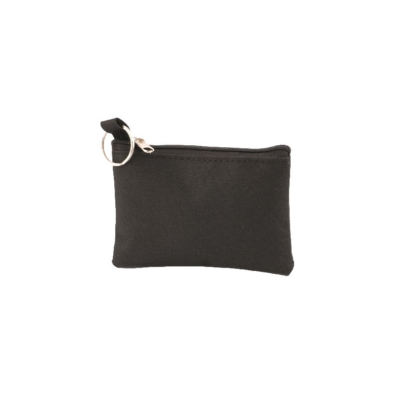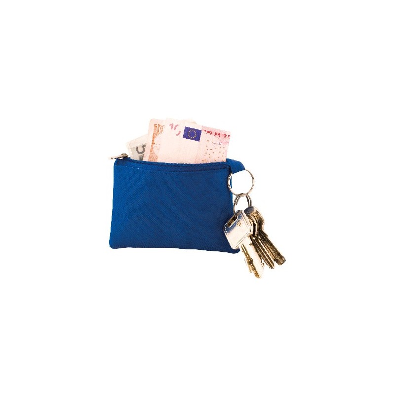 Nøglepunge / pengepunge i polyester. Praktisk pung til nøgler og penge. Også under rejsen til alternativ valuta. 11x8x1cm. Trykflade 6x4cm. Incl 1-farvetryk. Pr extra trykfarve v/100stk=2,25kr, 250=2,00, 500=1,15, 1000=0,88, 5000=0,75. Trykopstart 370,00kr.