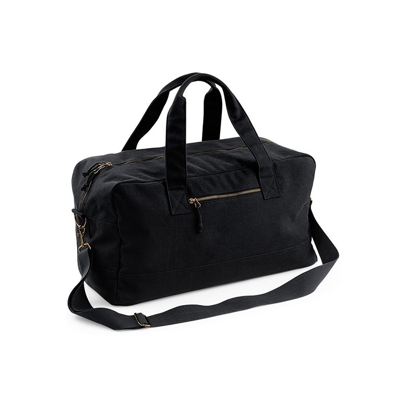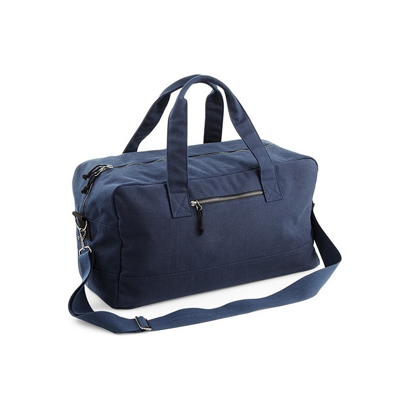 Weekend tasker, 52x29x24cm, Rummelig Weekend taske med lynlås og detaljer i antik messing look. Indvendig lomme og lynlås lomme foran. Håndtag og aftagelig justerbar skulderrem. 100% bomuldscanvas. Marine Pantone 296.