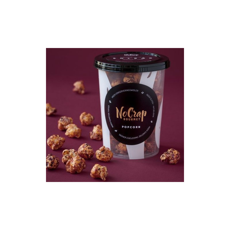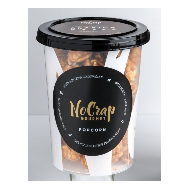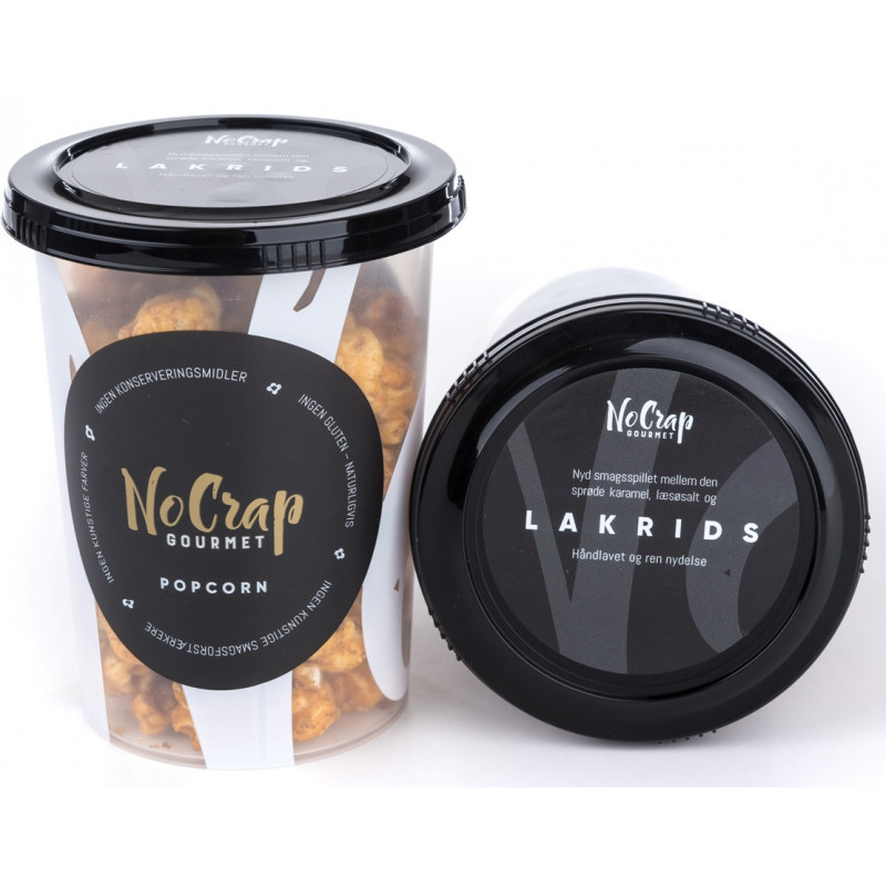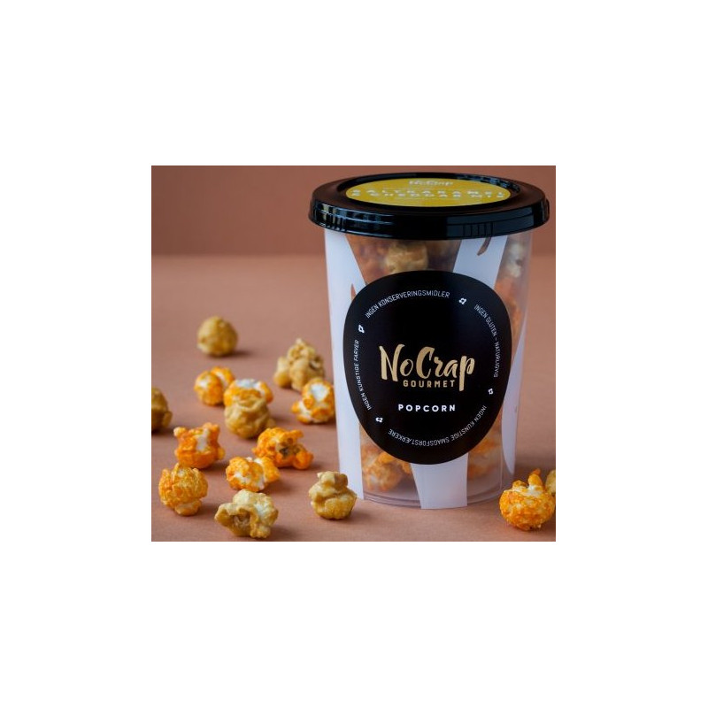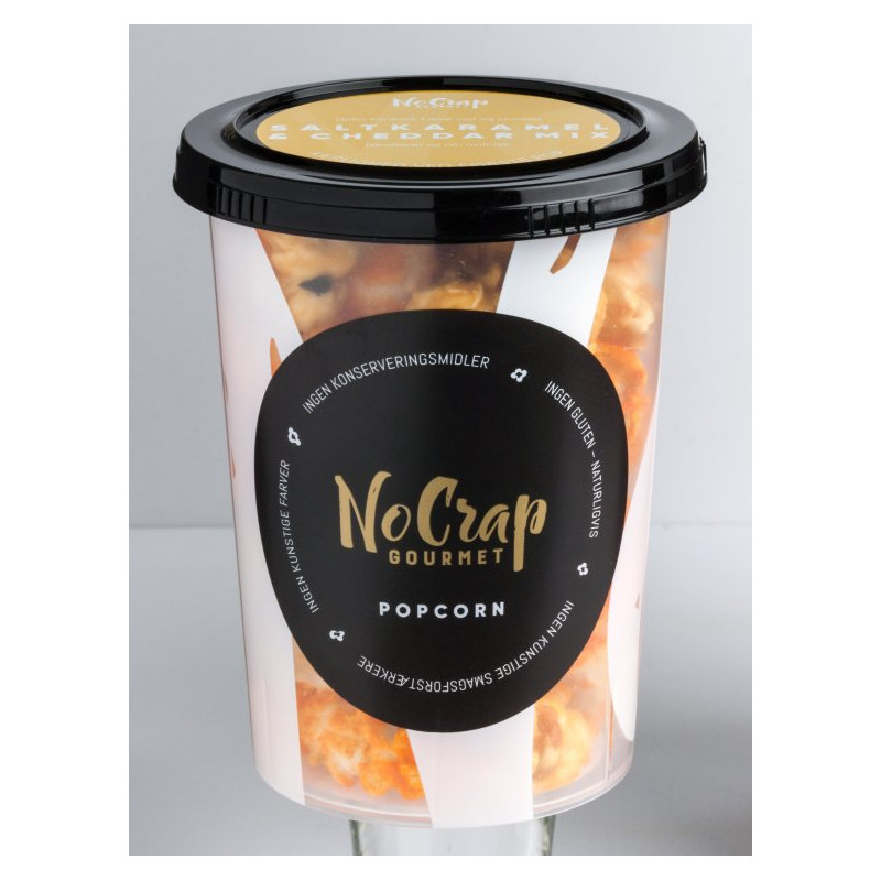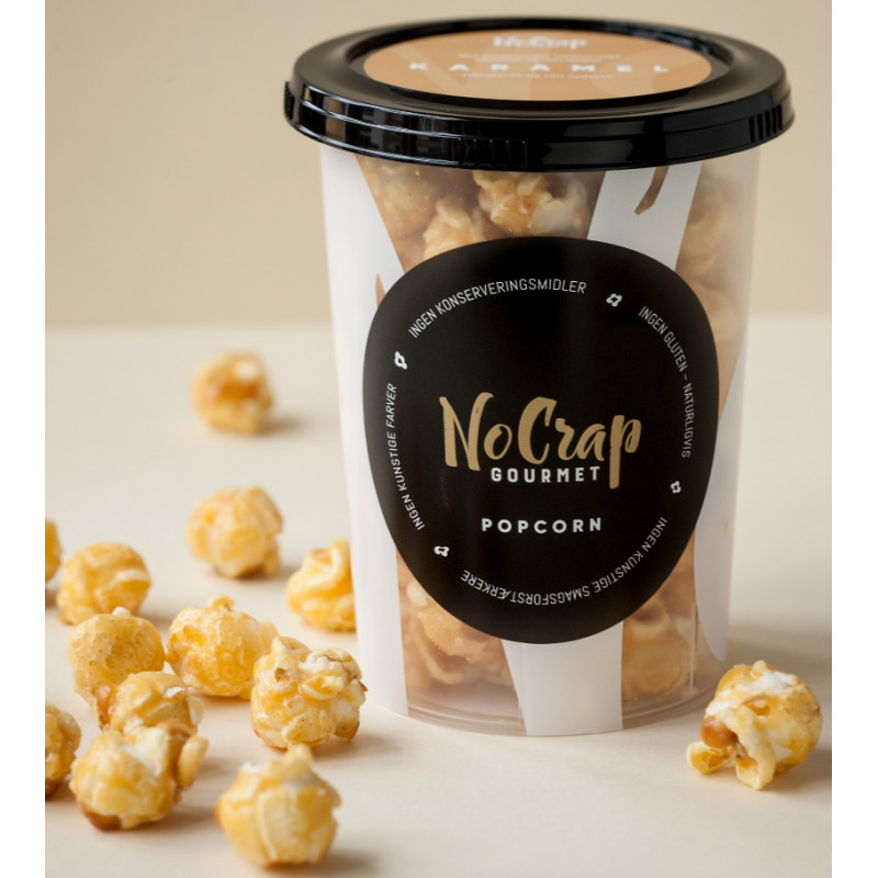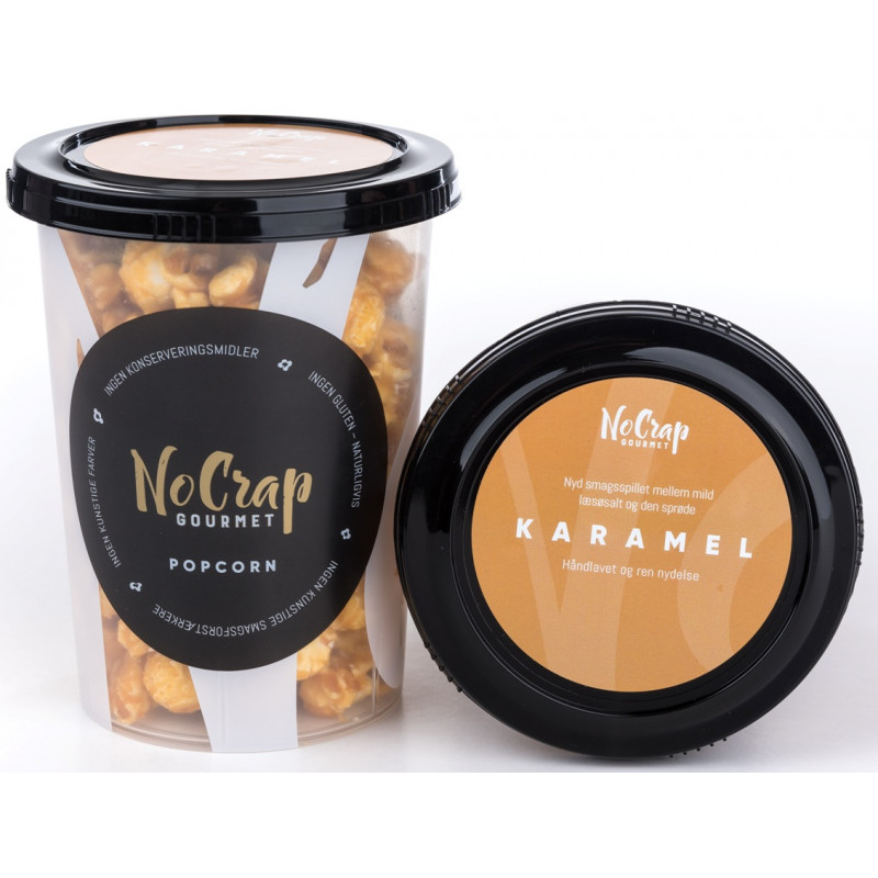 Model 2: Karamel. Super sprøde popcorn med sød karamel og smagsspil af Læsø havsalt. Pr. 535 ml: Karamel, Tredobbelt salt, hindbær og lakrids: Min 95g. Belgisk chokolade: Min 90g. Cheddar: Min 40g.