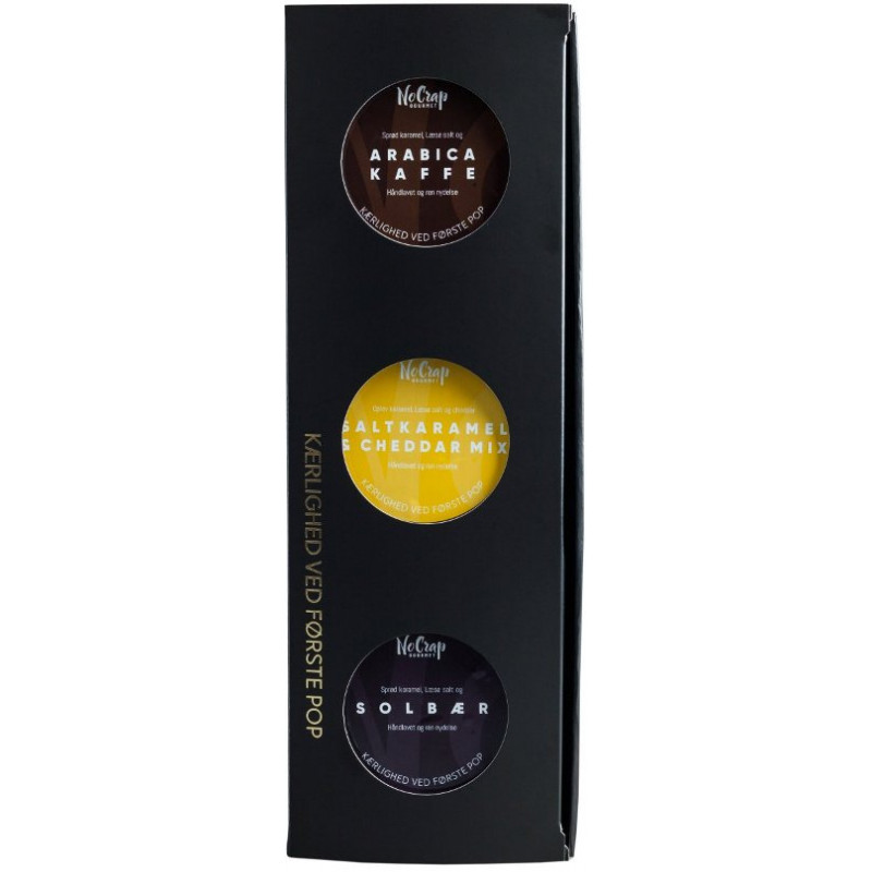 Popcorn i gaveæsker med kundereklamer. Ualmindelig lækker håndlavet popcorn. Læs om popcornene via nedenstående link.Model 1: Gaveæske med 6 stk 215ml/33g forskellige popcorn. Model 2: Gaveæske med 3 stk 535ml/95g forskellige popcorn. Priserne er incl farvefototryk samt trykopstart.