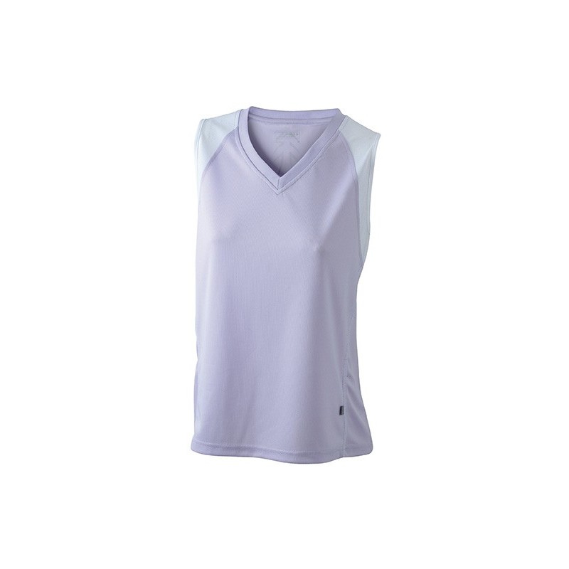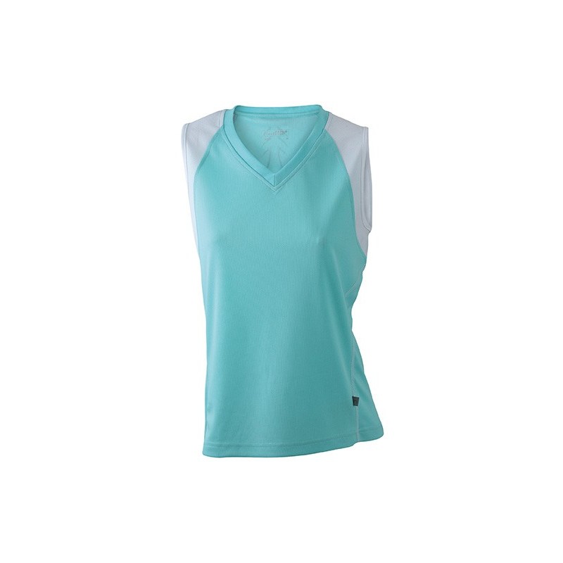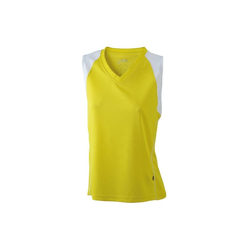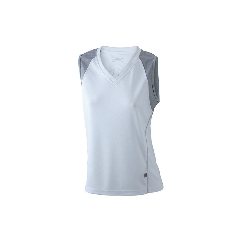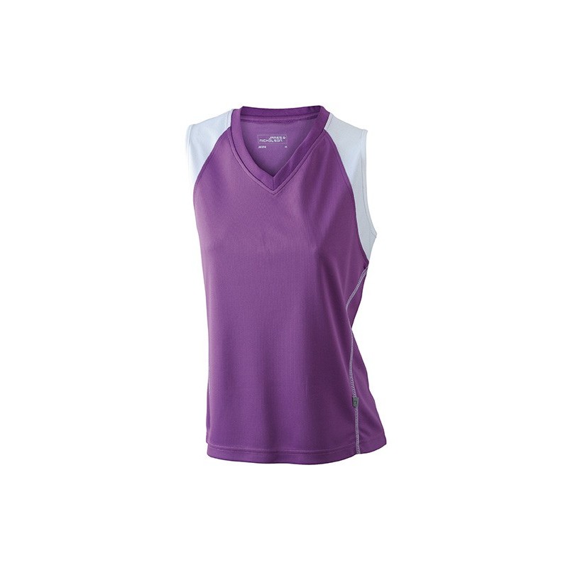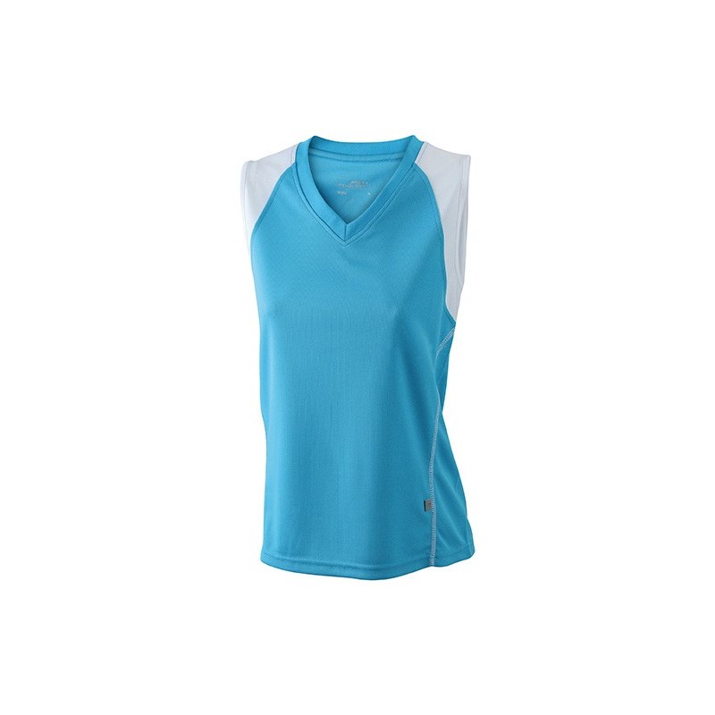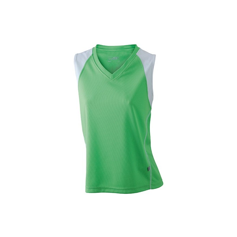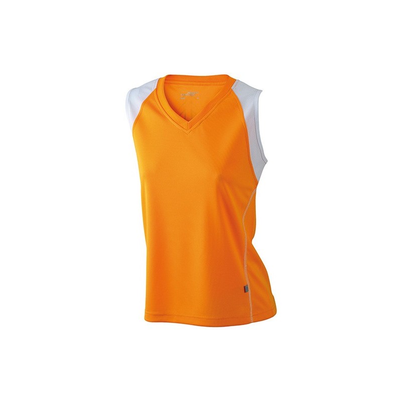 Dame løbe tanktop, 100% polyester svedtransporterende og hurtigtørende, kontrast i siden, reflextryk og piping på bagstykke, 140 gram pr m2.