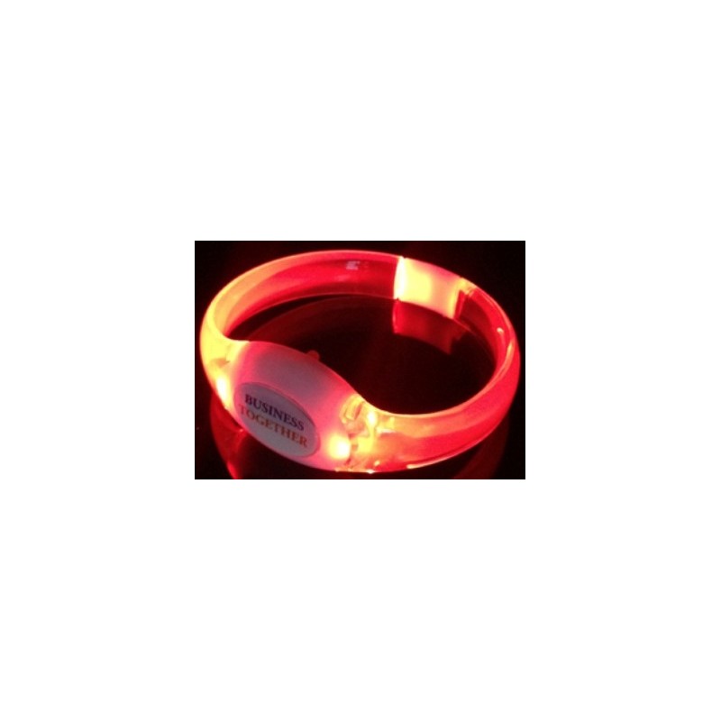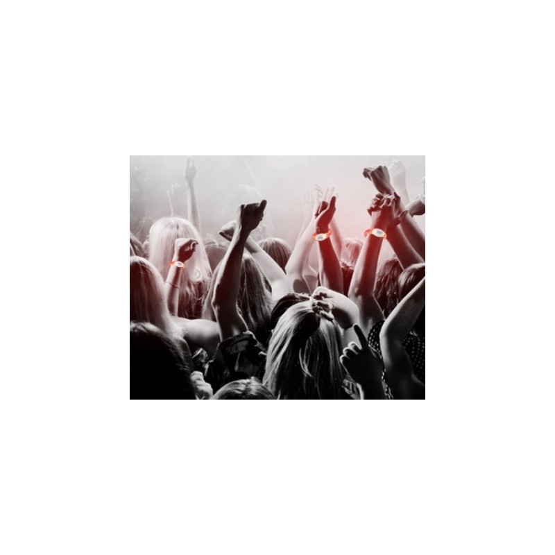 Multi lys Disco lys armbånd med LED pære, med 3 indstillinger slukket, fast lys eller interval blik. Kan bruges som cykkellygte, eller til og blive set når du løber eller går ture om aftnen, også rigtig festelige til by ture eller festivaler.