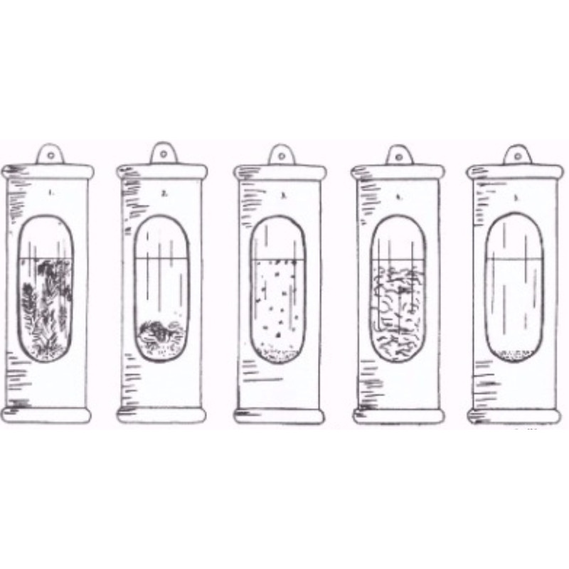 Væsken viser hvorledes vejret bliver et døgn frem i tiden. Specielt kan det ret entydigt vise om der er hårdt vejr på vej det næste døgns tid, eller det modsatte. De øvrige visninger skal tages med forbehold.