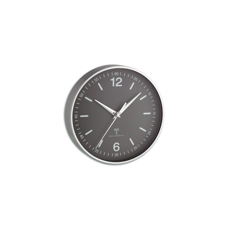 Radiostyrede vægure med glas rude ramme i børstet aluminium og grå ur skive Ø 195x45 mm. 392g. excl 1x 1,5V AA batteri batteri 2,50 kr. Ved køb for min 3.000,00kr tilbydes fabrikstryk v/10stk=25,00kr, 20=20,00, 30=12,00, 50=6,00, 100=5,00, 200=3,75, 500=2,40, 1000=1,50. Alternativt trykkes i Danmark. Trykopstart 530,00kr.