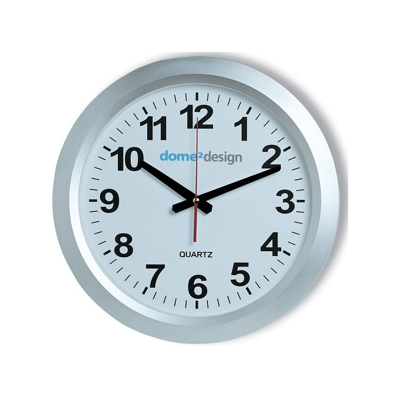 Vægure banegårdsure 38cm Ø x 5cm. Excl 1 stk AA batteri. Trykflade 6cm bred x 5cm høj. Pr tryk v/10stk=38,00kr, 20=25,00, 30=24,00, 40=18,50, 50=15,00, 60=14,00, 80=13,00, 100=12,50, 200=11,25. Trykopstart 530,00kr.